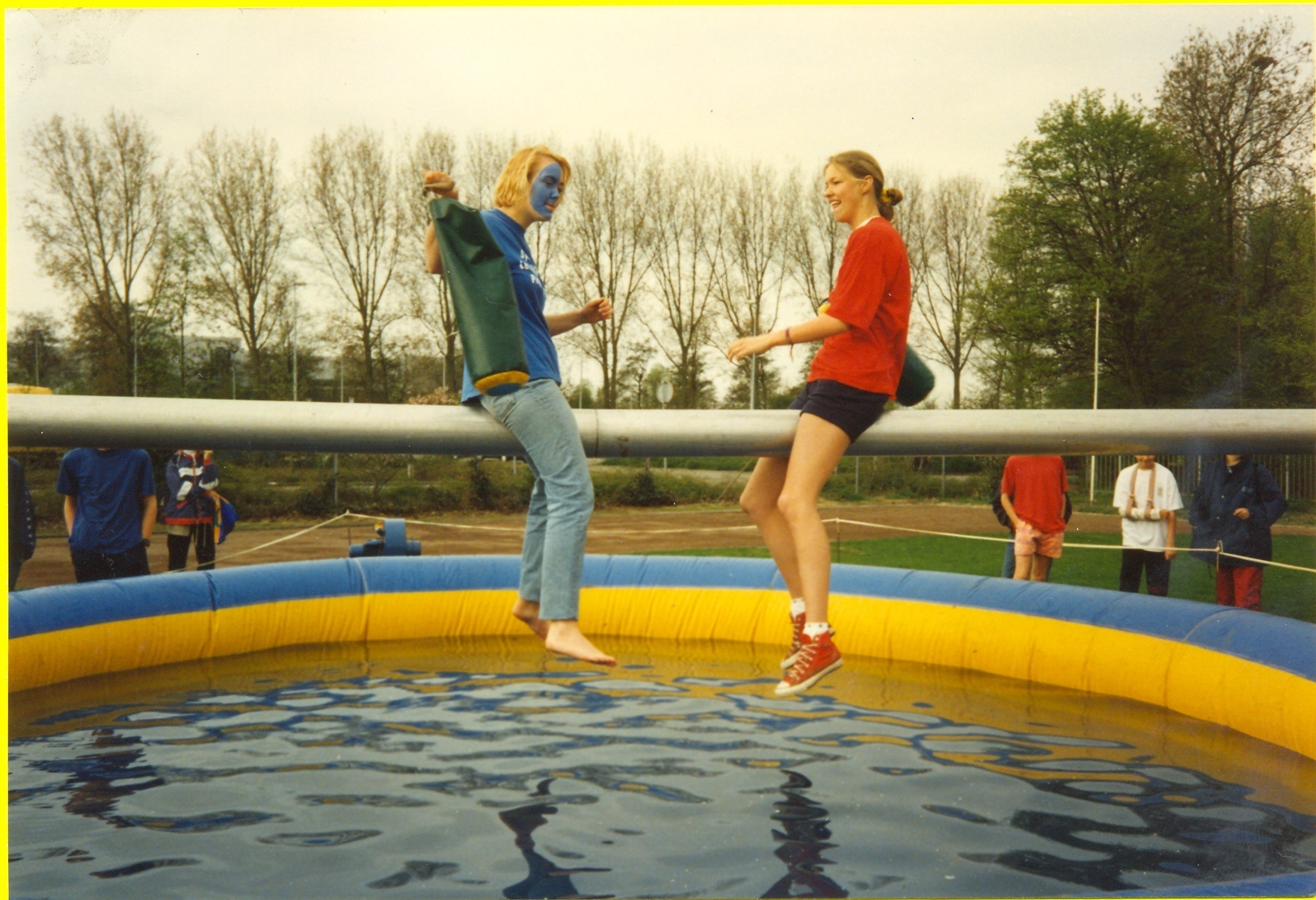 De richting van de schijf wordt gewijzigd door tegen de hoekplank te sjoelen. Daarna kan het door de poortjes naar binnen glijden.