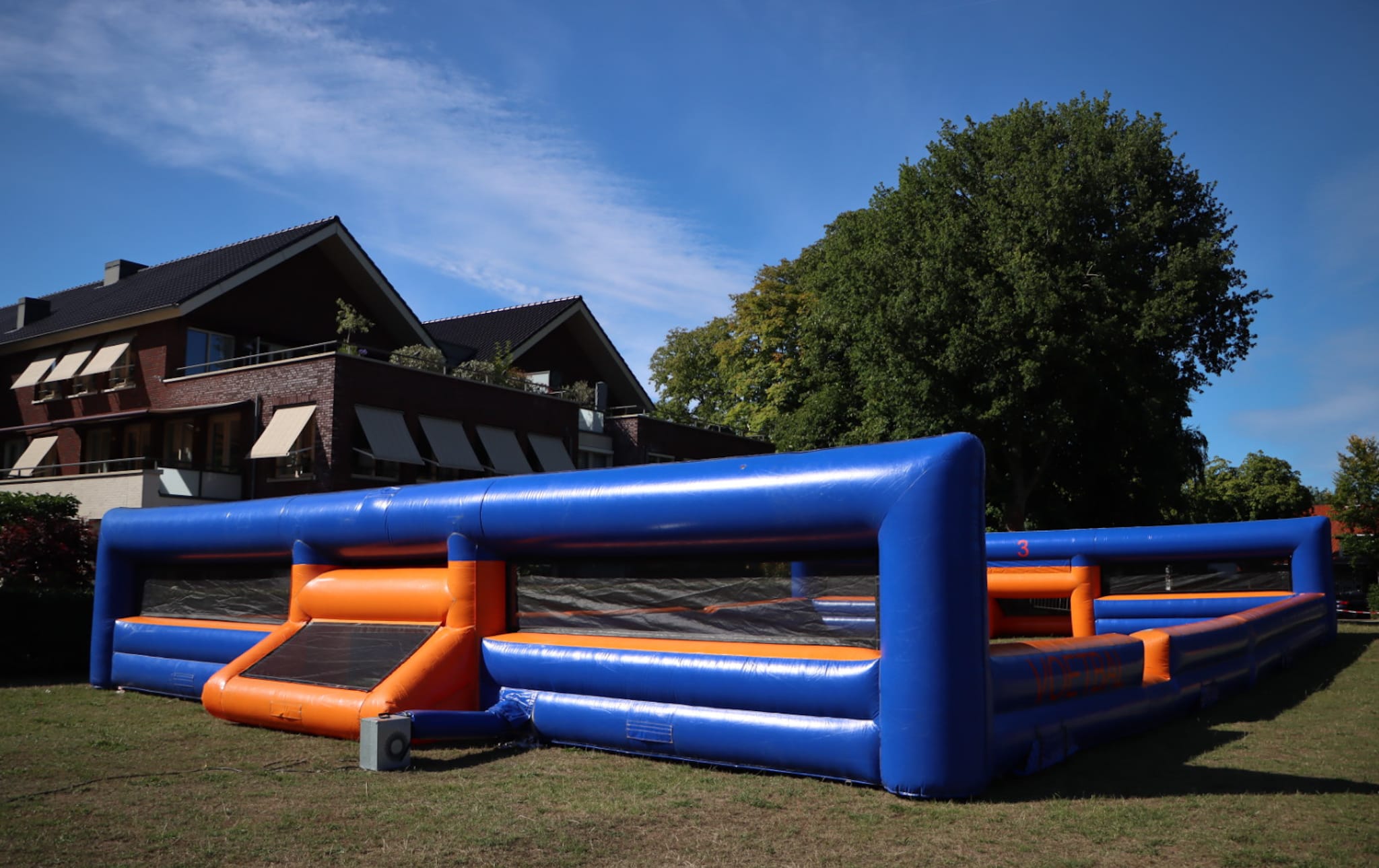 Opblaasbaar handbalveld, ook als voetbalveld te gebruiken.